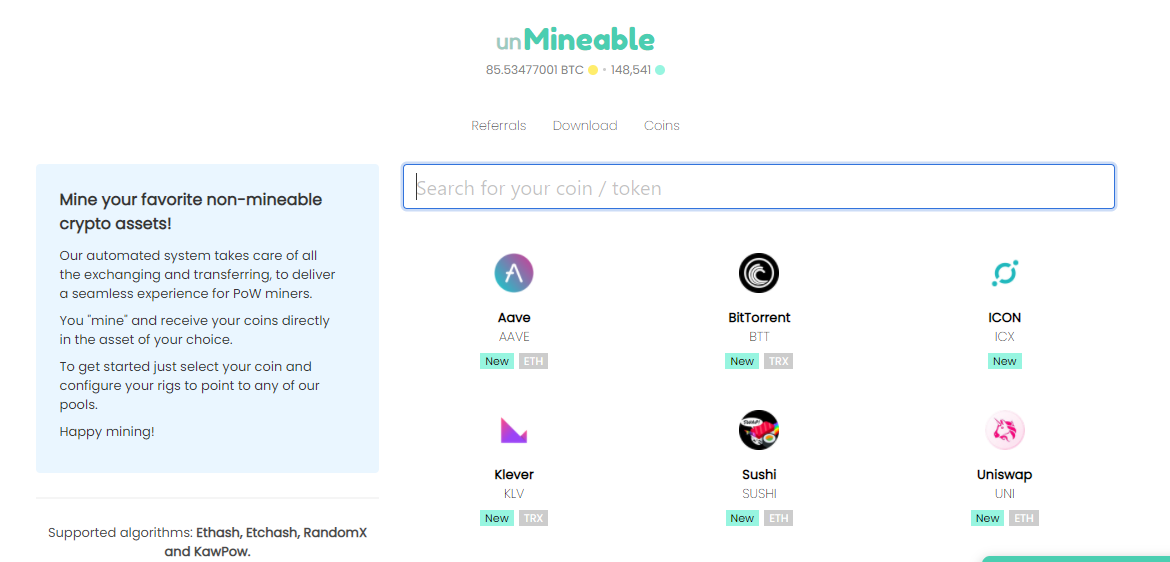 unMineable - Mine your favorite non-mineable crypto coin or token!
